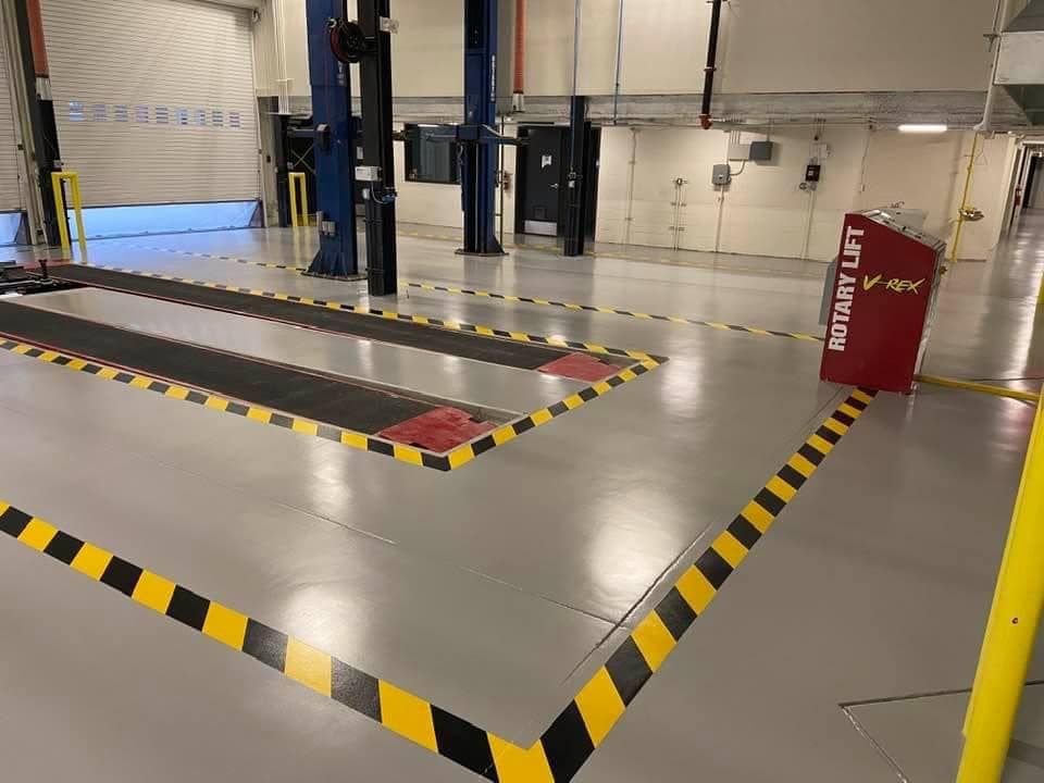 Servicebereiche sind stark frequentierte Bereiche, in denen Fahrzeuge, schwere Geräte und Werkzeuge ständig in Bewegung sind. Der Boden muss robust genug sein, um das erhebliche Gewicht und die Stöße ohne Beschädigung auszuhalten. Epoxidböden eignen sich hervorragend für diesen Bereich, da sie eine harte, langlebige Oberfläche bieten, die den Anforderungen eines stark frequentierten Servicebereichs standhält.